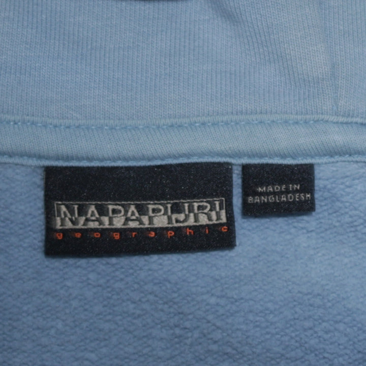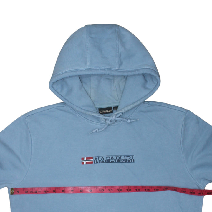 Napapijri Light Blue Hoodie Women’s Medium Embroidered Flag Logo Front Pocket Pullover Sweatshirt
