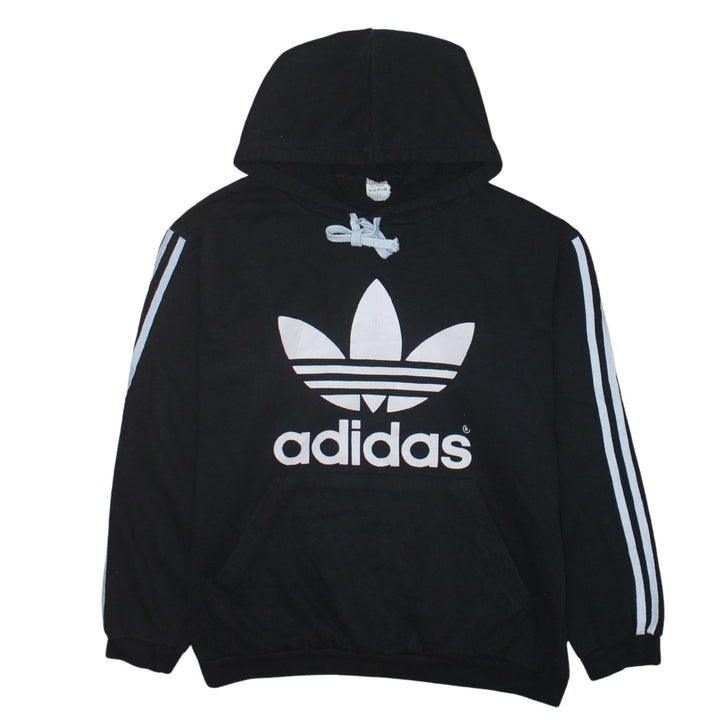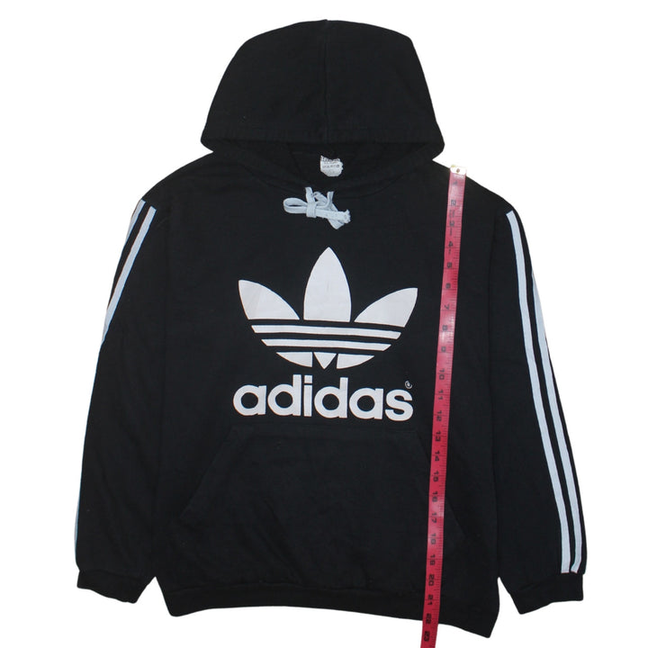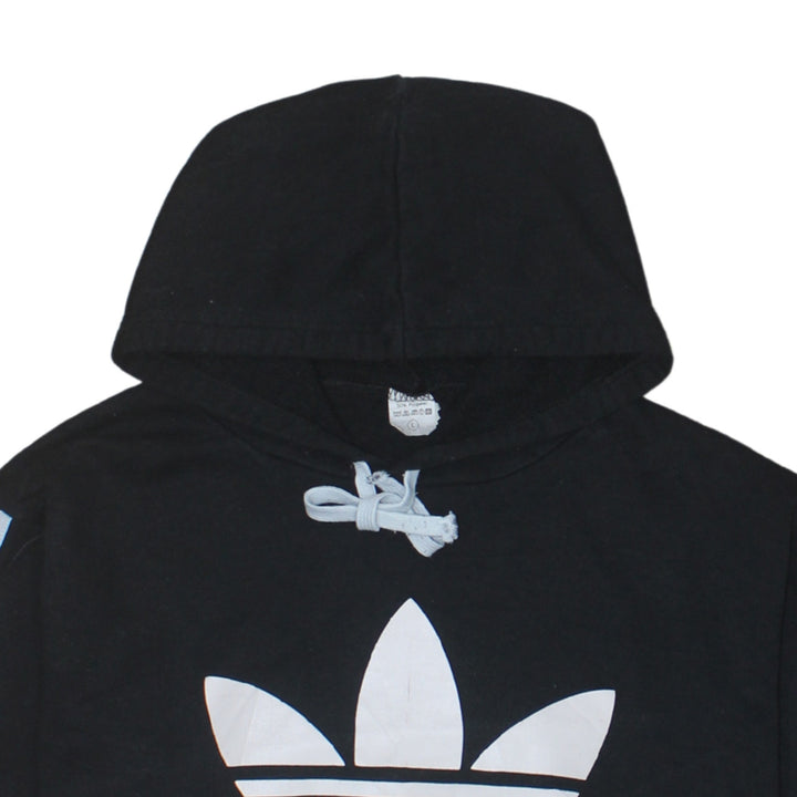 Adidas Black Hoodie Women’s Large Trefoil Printed Logo Three Stripe Sleeves Sweatshirt