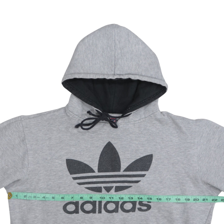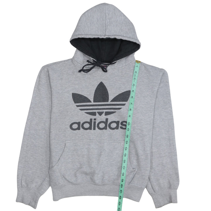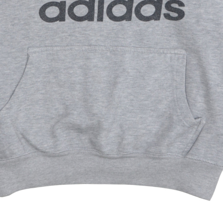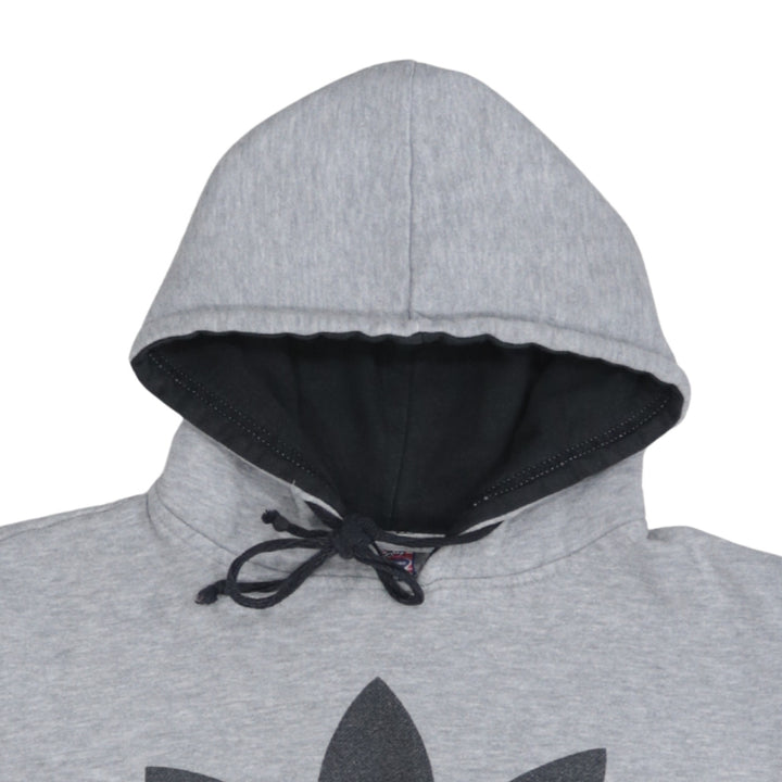 Adidas Grey Hoodie Men's Large Trefoil Printed Logo Front Pocket Pullover Sweatshirt