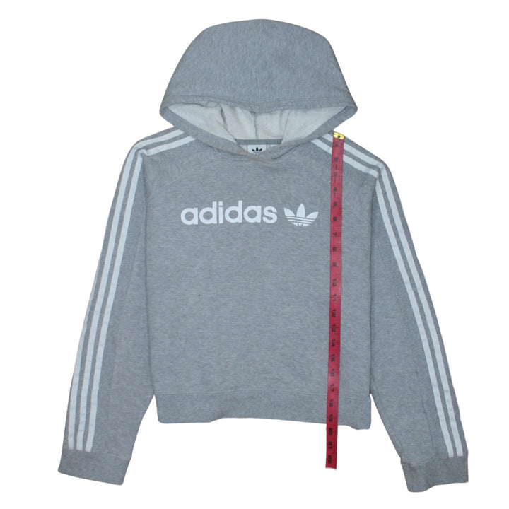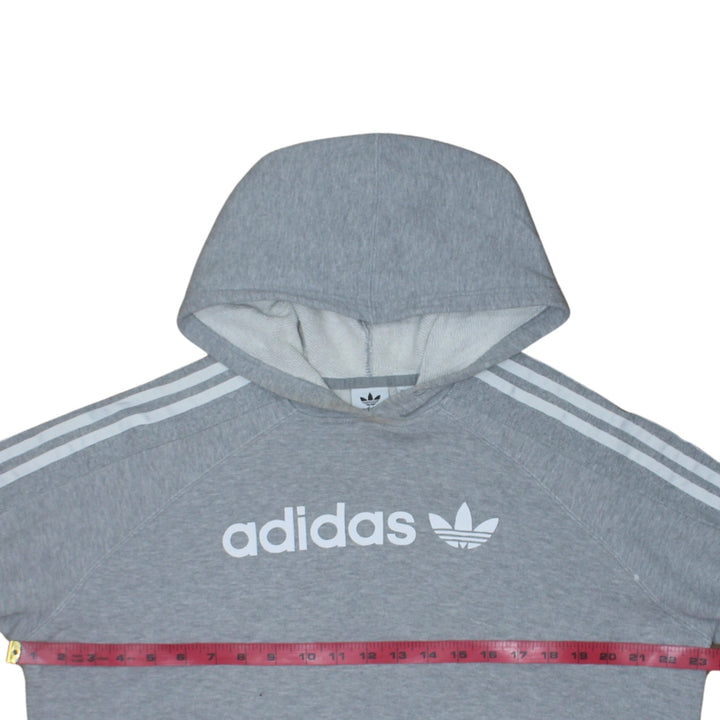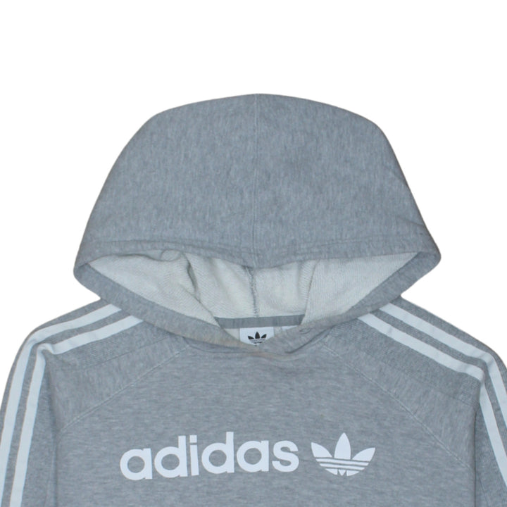 Adidas Grey Hoodie Women’s UK12 Printed Trefoil Logo Three Stripe Sleeves Pullover Sweatshirt