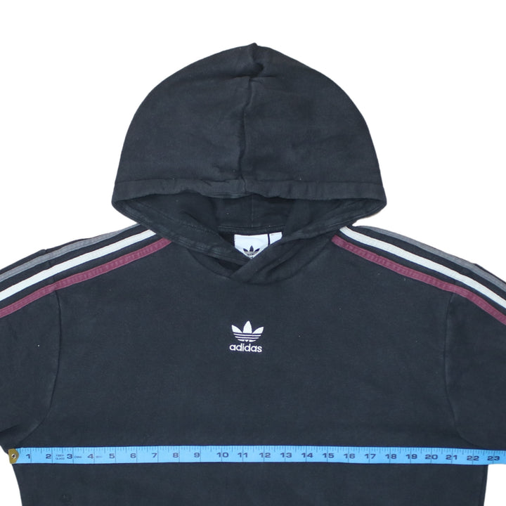 Adidas hoodie, Adidas black hoodie, Adidas Trefoil hoodie, Adidas mens hoodie, black Adidas sweatshirt, mens black hooded sweatshirt, Adidas medium hoodie, cotton polyester hoodie, fleece lined hoodie, embroidered logo hoodie, triple stripe sleeves, striped sleeve hoodie, casual sports hoodie, Adidas pullover top, mens casual top, loungewear hoodie, gym hoodie, everyday hoodie, classic Adidas logo, Adidas Originals style, mens street style hoodie, black fleece hoodie, long sleeve hooded top, Adidas fan clothing, Adidas sportswear, warm winter hoodie, layered outfit top, relaxed fit hoodie, oversized style hoodie, pullover sweatshirt, hooded fleece top, Adidas black jumper, Adidas athletic wear, Adidas training gear, Adidas casual wear, Adidas logo clothing, medium size hoodie, mens medium sweatshirt, soft cotton hoodie, comfy hoodie, Adidas three stripes, burgundy stripe sleeves, grey stripe sleeves, kangaroo pocket hoodie, ribbed cuff hoodie, ribbed hem hoodie, Adidas 80 cotton 20 polyester, mens fashion hoodie