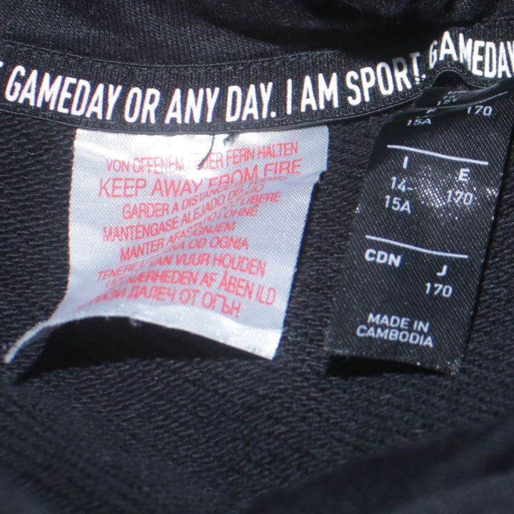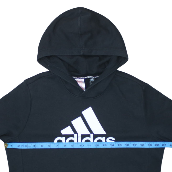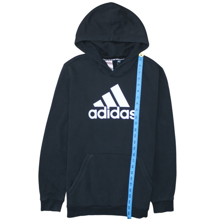 Adidas Black Hoodie Women’s Medium Printed Logo Front Pouch Pocket Pullover Sweatshirt