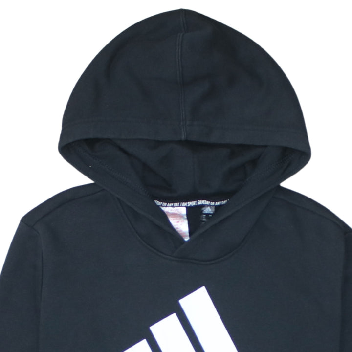 A classic black Adidas pullover hoodie, perfect for everyday wear, layering, or throwing on after the gym.The bold front logo gives it an instantly recognisable sports look, while the soft cotton blend fabric keepsit comfortable and easy to wear. Ideal for pairing with jeans, leggings or joggers for a casual outfit allyear round.