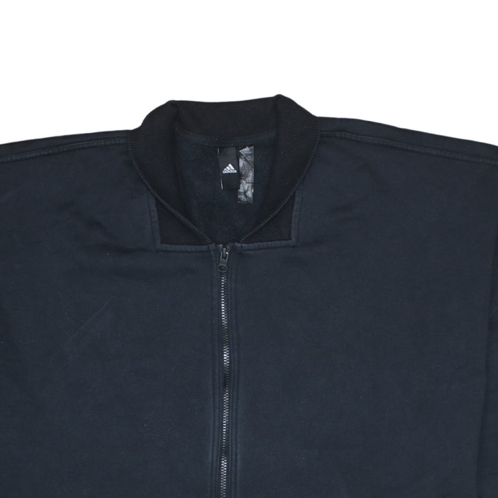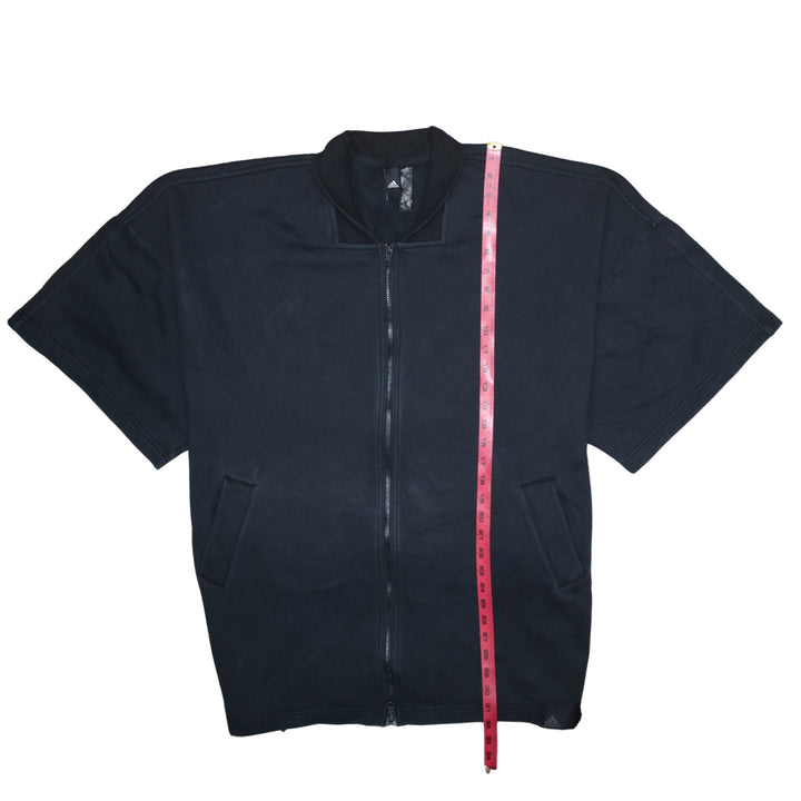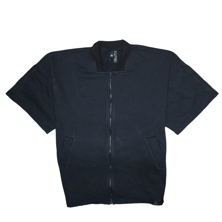 Key Features: Short sleeves, full front zip, front pockets, minimalist Adidas logo, relaxed shape