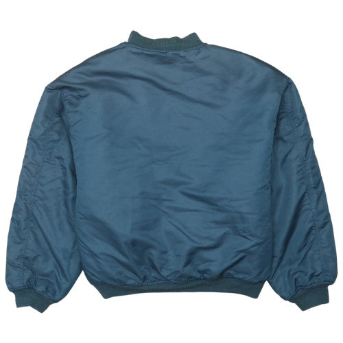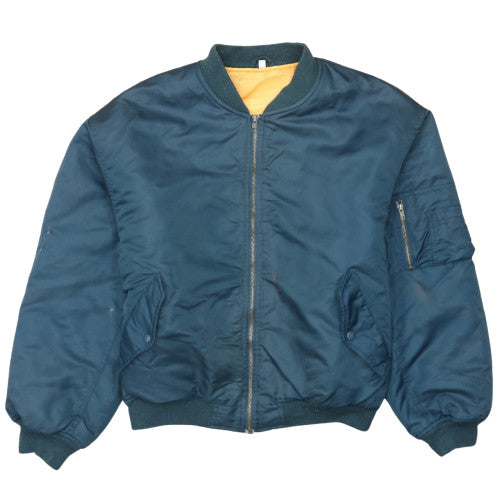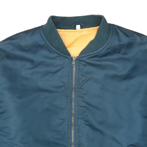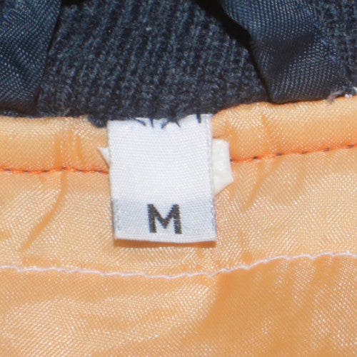 Retro bomber jacket, Retro navy jacket, navy blue bomber, men's bomber jacket, men's navy coat, men's medium bomber, MA-1 style jacket, orange lining bomber, flight jacket men, zip front jacket, ribbed hem jacket, ribbed cuffs jacket, casual outerwear, everyday jacket, lightweight padded jacket, polyester bomber, wool blend bomber, classic bomber style, sleeve zip pocket, utility sleeve pocket, front flap pockets, snap pocket jacket, relaxed fit bomber, oversized fit jacket, men's outerwear medium, navy blue coat medium, casual style jacket, layering jacket, autumn jacket men, winter bomber jacket, street casual jacket, minimalist bomber, solid colour bomber, blue nylon look jacket, lined bomber jacket, men's fashion jacket, wardrobe staple jacket, throw on jacket, pre-owned bomber jacket, second hand bomber jacket, small mark front, affordable bomber jacket, vintage style bomber, classic navy flight jacket, men's medium outerwear, zip up coat men, quilted lining jacket, orange quilt lining