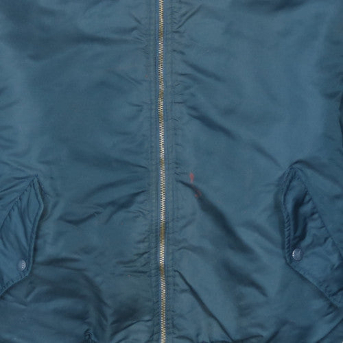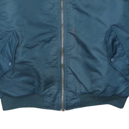 Retro Navy Blue Bomber Jacket Men's Medium Zip Pockets Ribbed Hem Flight Jacket