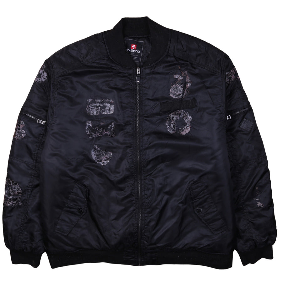 Love Tribe Women's Black Graphic Bomber Jacket Large Zip Lightweight
