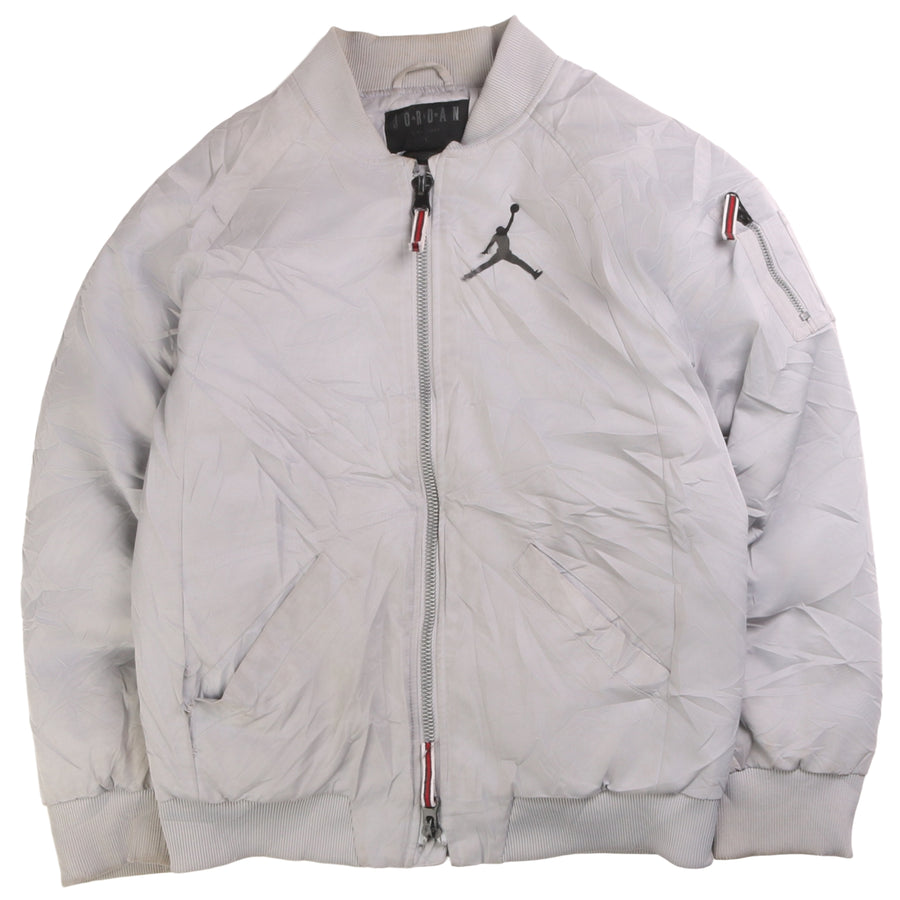 Alpha Industries Light Grey Bomber Jacket Men's XLarge Embroidered Logos Striped Rib Cuffs Outerwear