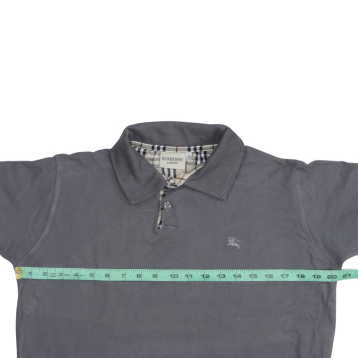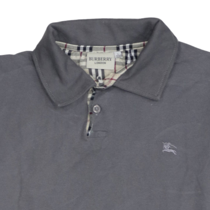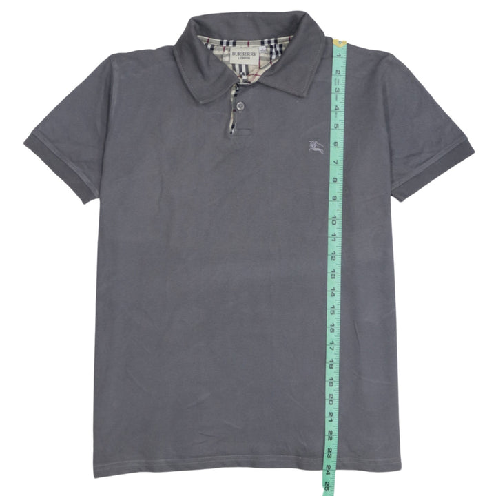 Burberry, Burberry London, Burberry polo, Burberry womens polo, Burberry grey polo, charcoal grey polo shirt, womens designer polo, womens Burberry top, large Burberry polo, L Burberry shirt, short sleeve polo, cotton pique polo, embroidered logo polo, equestrian knight logo, Nova check collar, Nova check placket, designer casual top, smart casual polo, classic polo shirt, womens grey top, womens casual shirt, collared short sleeve top, pre-owned Burberry, second hand Burberry, A grade Burberry, Burberry large womens, luxury polo shirt, heritage brand top, minimalist polo, everyday basic polo, wardrobe staple, fitted polo shirt, relaxed fit polo, chest 20.5 inches, length 24 inches, womens designer clothing, UK fashion, casual wear, office casual top, weekend style, layering piece, neutral colour polo, classic Burberry style, timeless design, Burberry check detail, soft cotton fabric, breathable summer top, all season polo, high quality polo shirt