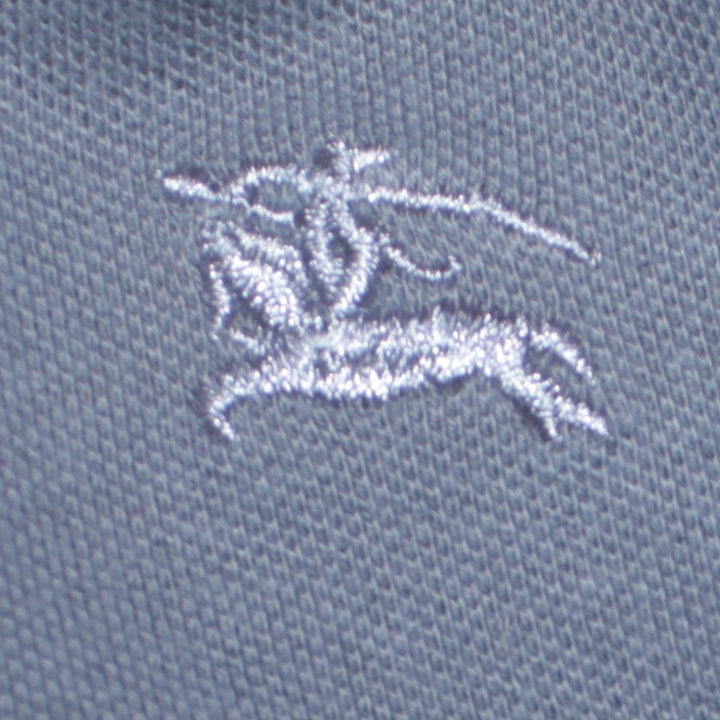 Burberry Charcoal Grey Polo Shirt Women's Large Embroidered Equestrian Logo Nova Check Collar Top