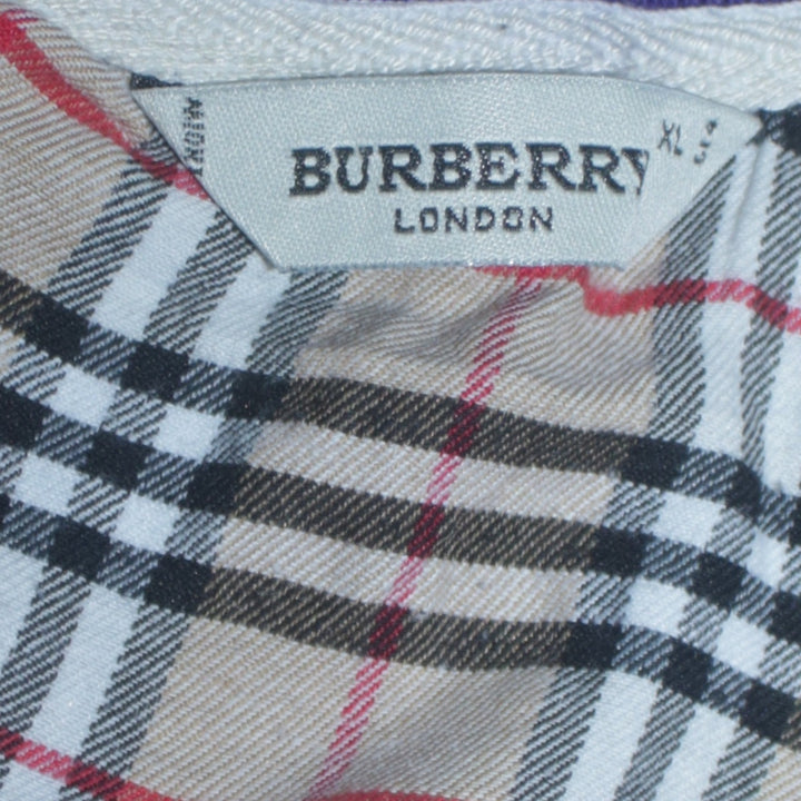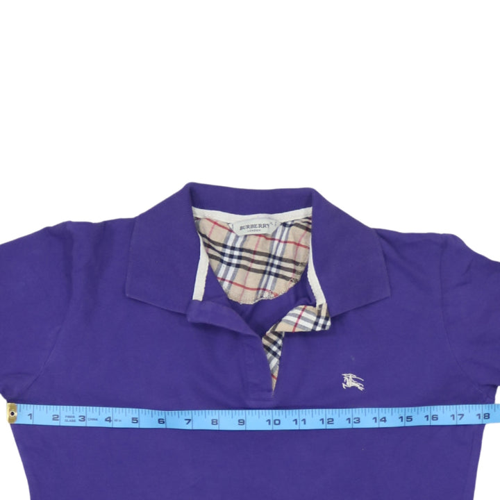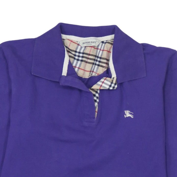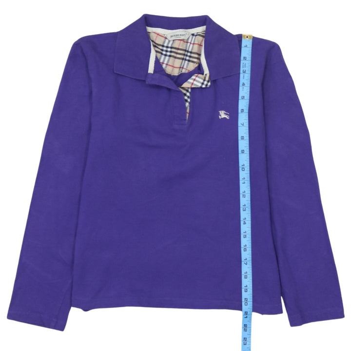 Burberry Purple Long Sleeve Polo Shirt Women’s XLarge Embroidered Logo Nova Check Collar Top