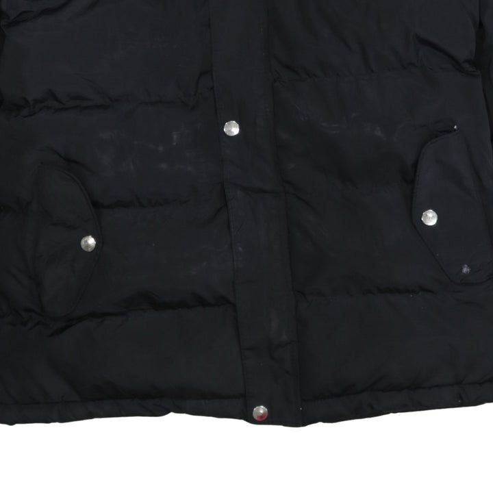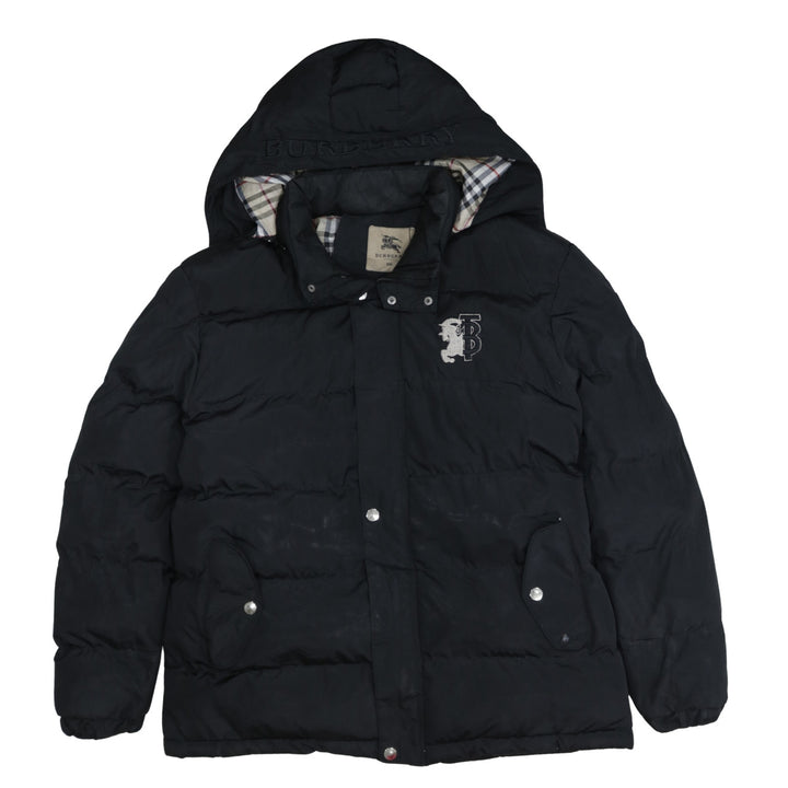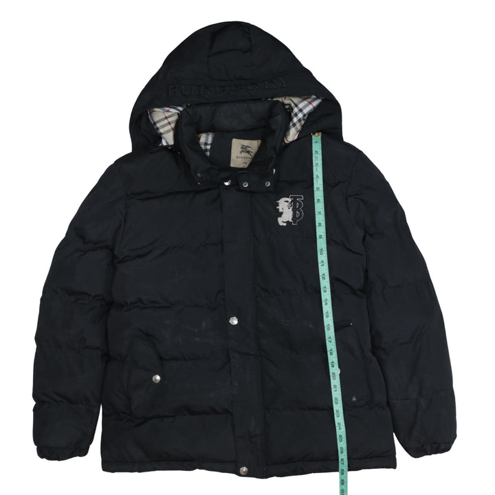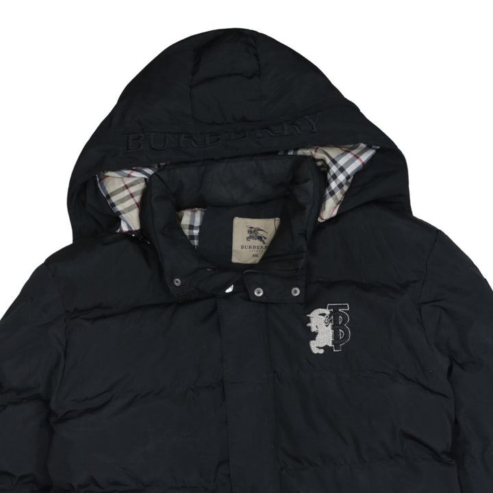 Burberry Black Down Puffer Jacket Women’s XXLarge Hooded Embroidered Logo Check Lining Coat