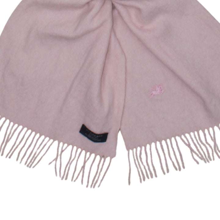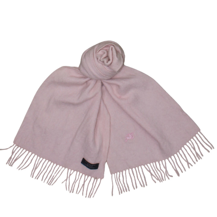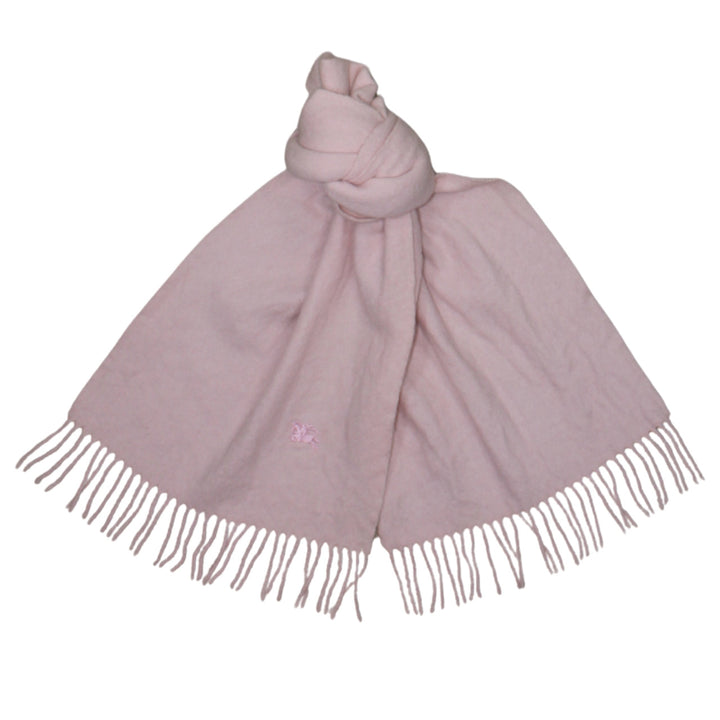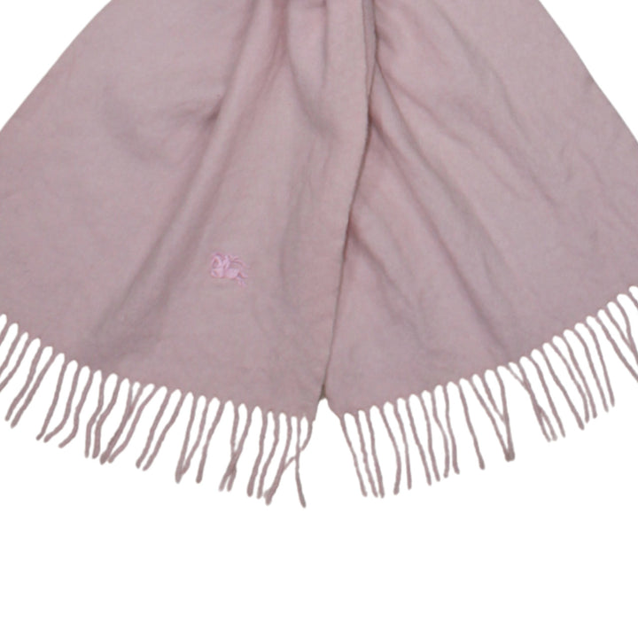 Burberry Light Pink Scarf Men’s One Size Embroidered Equestrian Logo Tassel Trim Shawl