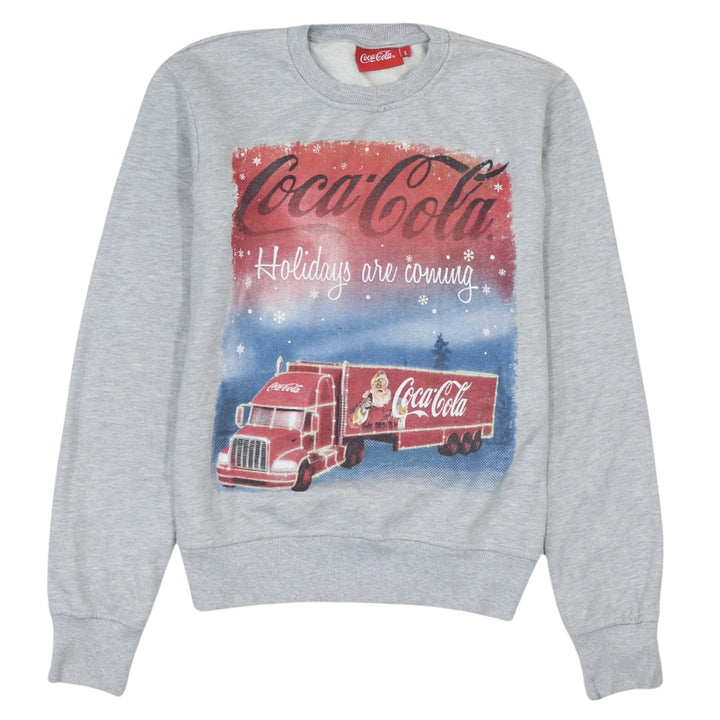 Coca Cola sweatshirt, Coca Cola Christmas jumper, grey Coca Cola pullover, holidays are coming jumper, Coca Cola truck sweater, men's small sweatshirt, men's grey crewneck, festive Coca Cola top, Christmas advert jumper, Coca Cola logo print, soft fleece sweatshirt, casual winter jumper, long sleeve crewneck, ribbed cuffs and hem, cosy loungewear top, small size Coca Cola, unisex festive sweatshirt, Christmas party jumper, grey marl sweater, graphic print sweatshirt, Coca Cola branding, holiday season clothing, casual Christmas wear, winter layering top, Coca Cola memorabilia clothing, slogan print jumper, men's casual pullover, crew neck fleece top, warm cotton blend sweatshirt, classic advert design, nostalgic Christmas jumper, soft inner fleece, relaxed fit sweatshirt, everyday winter wear, Coca Cola fan gift, graphic truck print, seasonal fashion, grey fleece jumper, holidays are coming sweater, Coca Cola small size top, Christmas themed clothing, pre-owned Coca Cola sweatshirt, collectible Coca Cola apparel, festive season outfit, Coca Cola crew neck, printed logo sweatshirt, casual festive jumper, warm cosy sweater, grey casual pullover, Christmas loungewear