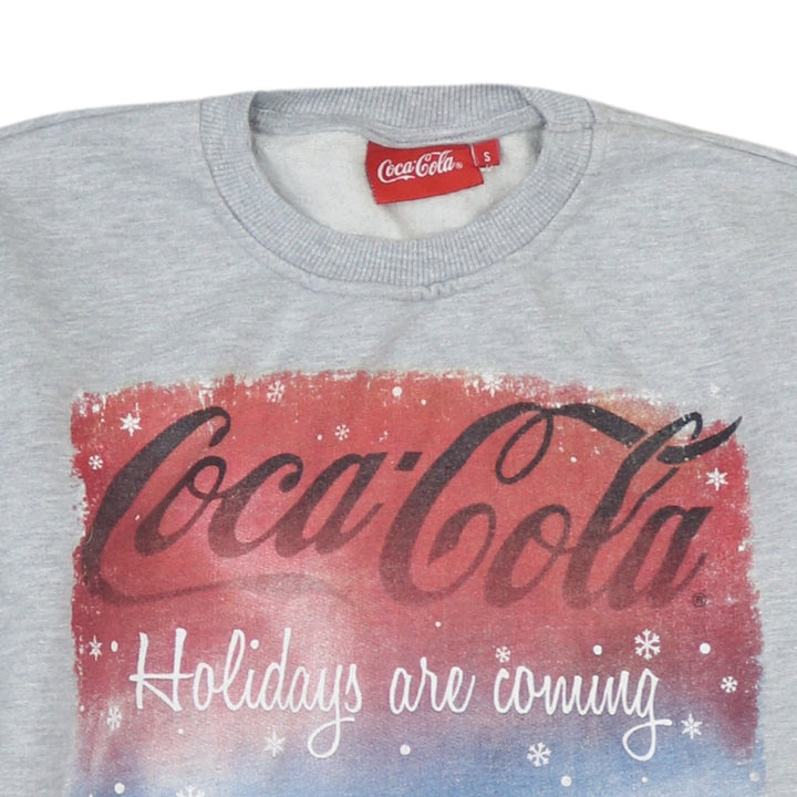 Coca Cola Grey Sweatshirt Men's Small Printed Holidays Are Coming Christmas Pullover Jumper