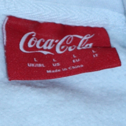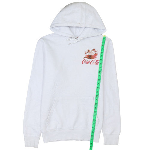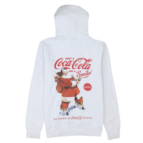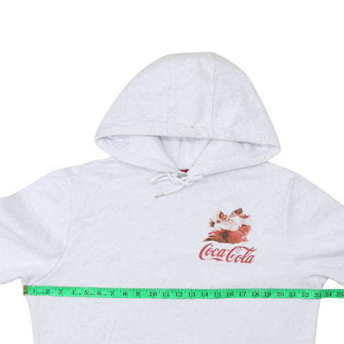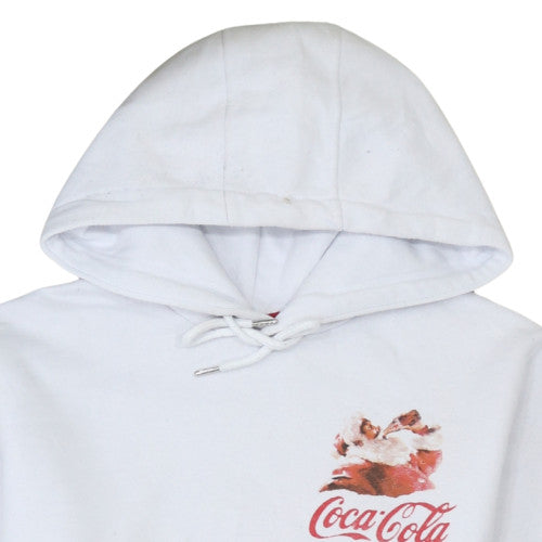 Coca Cola White Hoodie Women’s Large Printed Santa Logo Front Pouch Fleece Sweatshirt