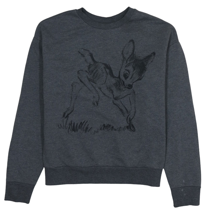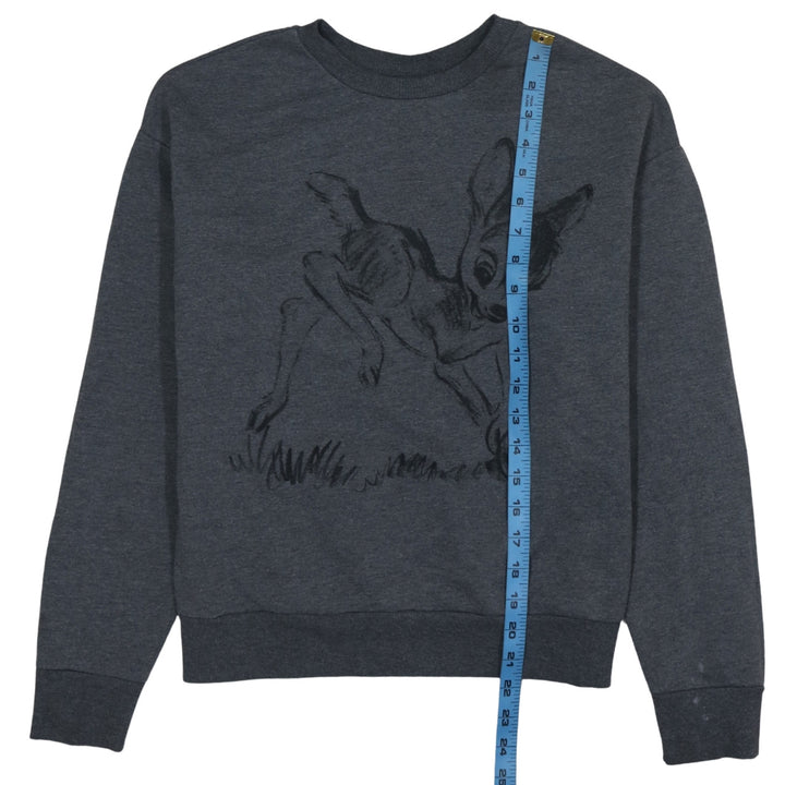 Disney Dark Grey Sweatshirt Women’s XXSmall Printed Bambi Graphic Crewneck Pullover Top