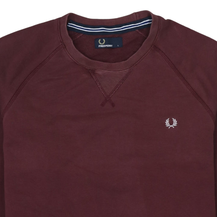 Fred Perry Burgundy Red Sweatshirt Men’s Large Embroidered Laurel Wreath Logo Crewneck Pullover