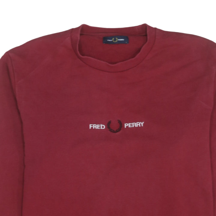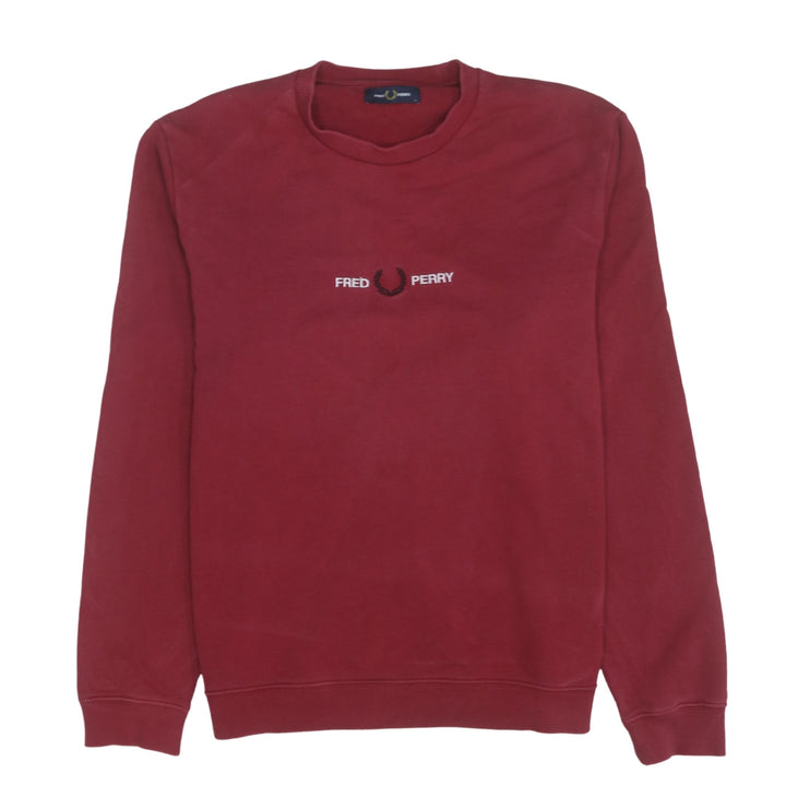 Fred Perry Burgundy Red Sweatshirt Men's Large Embroidered Chest Logo Crewneck Pullover Top