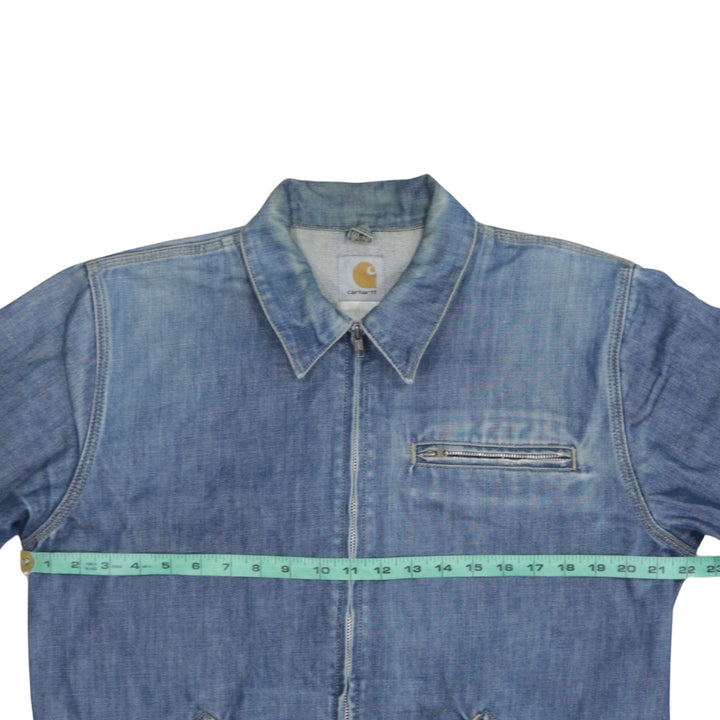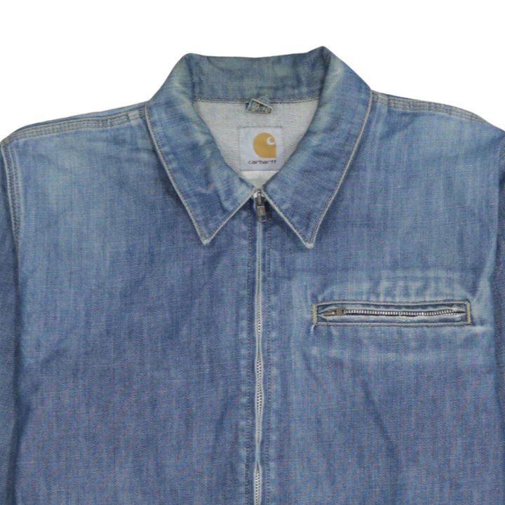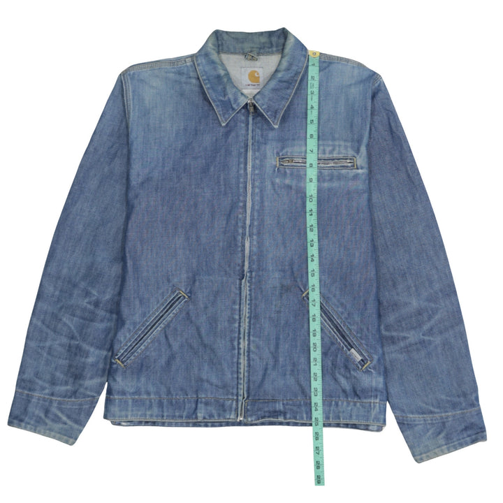 Carhartt Light Blue Denim Jacket Men's Medium Zip Front Pockets Adjustable Hem Workwear Outerwear