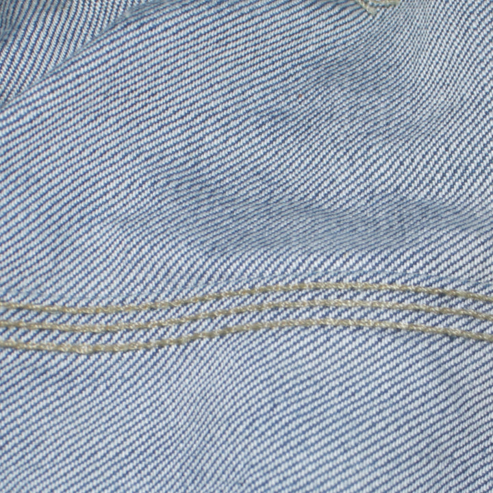 - Soft, broken-in light wash denim with subtle fade and whiskering