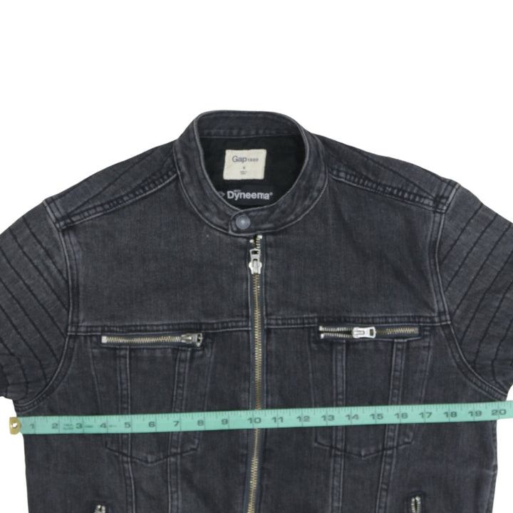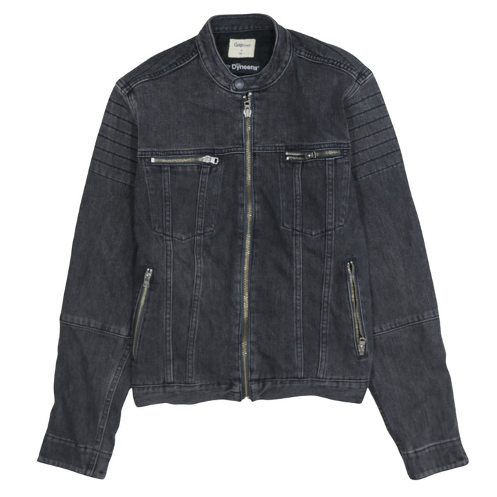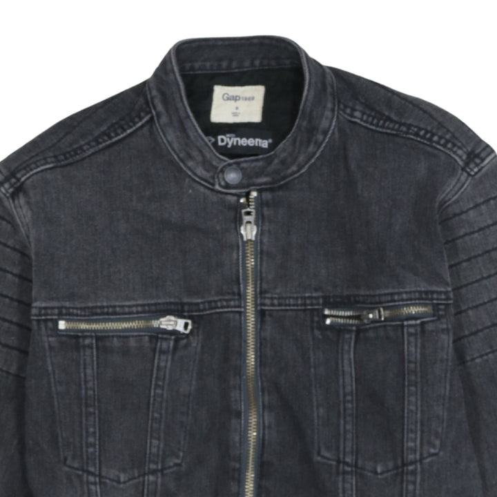 Gap Charcoal Black Denim Jacket Men's Small Zip Pockets Biker Style Outerwear