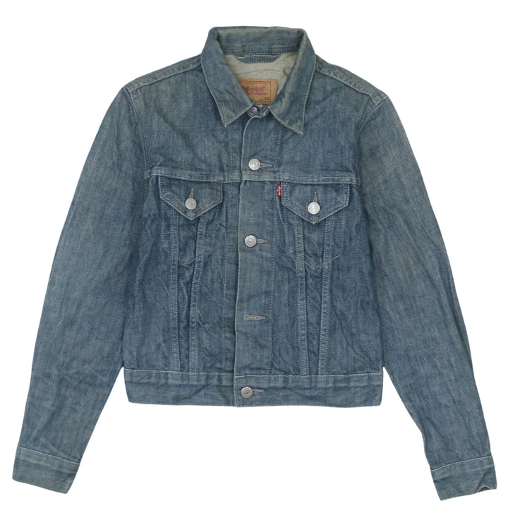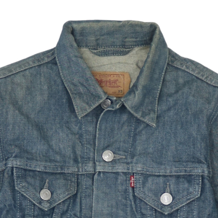 Levi Strauss & Co, Levi's, Levi, denim jacket, trucker jacket, light blue denim, blue jean jacket, women’s denim jacket, womens denim, girls denim jacket, XS denim jacket, extra small denim jacket, fitted denim jacket, cropped denim jacket, button front jacket, long sleeve denim, casual outerwear, classic jean jacket, Levi red tab, chest pockets, light wash jean jacket, A vintage quality, everyday jacket, casual jacket, layering piece, spring jacket, summer jacket, autumn jacket, festival jacket, timeless denim, wardrobe staple, San Francisco label, Levi Strauss girls, petite denim jacket, small fit jacket, Levi coat, Levi outerwear, blue trucker, women’s XS jacket, light wash Levi's, authentic Levi Strauss, classic style jacket