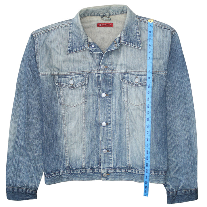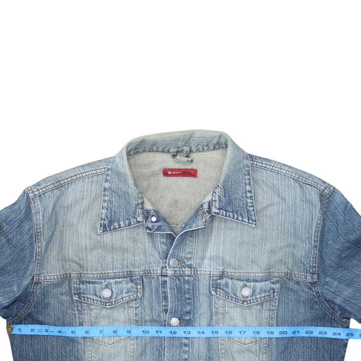 A timeless light blue denim jacket in a relaxed XLarge fit, ideal for layering over tees or knitwear.The faded wash gives it an easy, lived-in look while the sturdy denim and metal hardware keep it durablefor everyday wear. A great grab-and-go outer layer that works across seasons and styles.