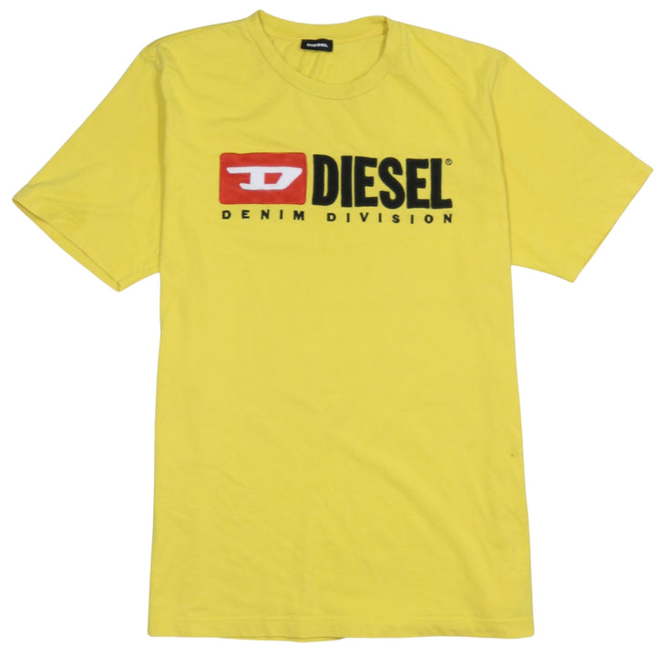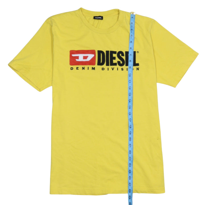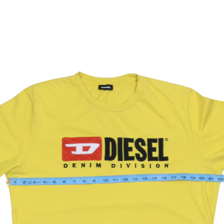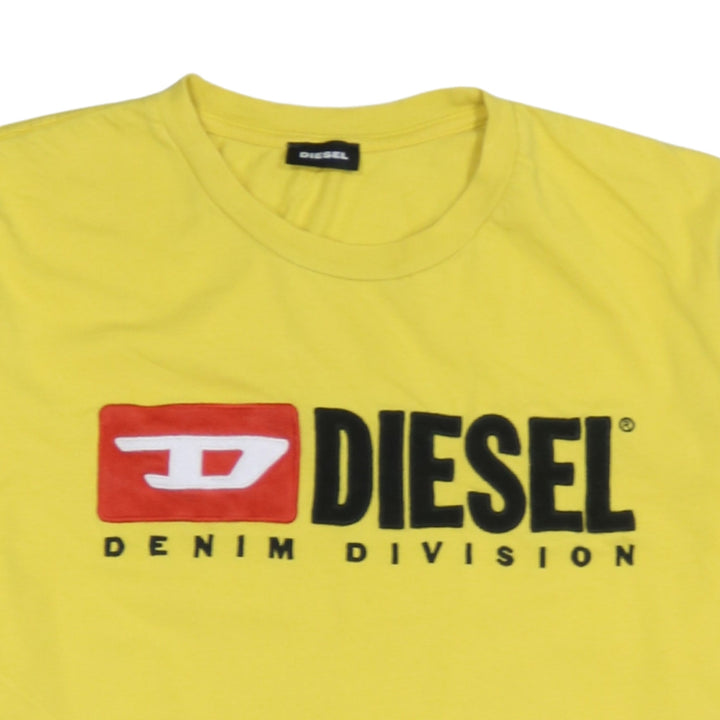 Diesel Yellow T Shirt Men's Large Big Printed Denim Division Logo Casual Tee Top