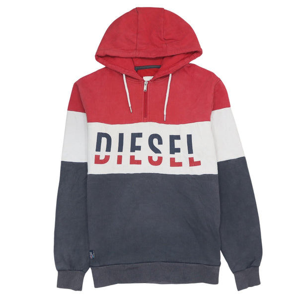 Diesel White Hoodie Men's Large Printed Front Logo Slogan Pullover Sweatshirt