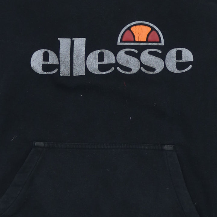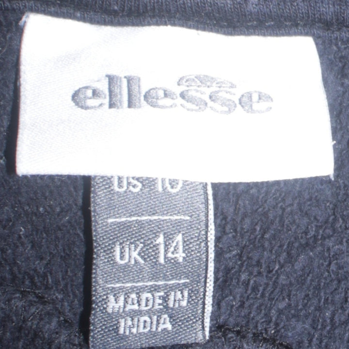 Ellesse Black Hoodie Women’s UK14 Embroidered Chest Logo Contrast Stitch Front Pocket Sweatshirt