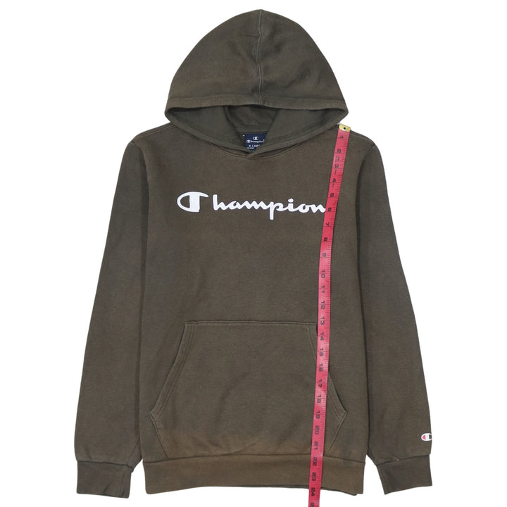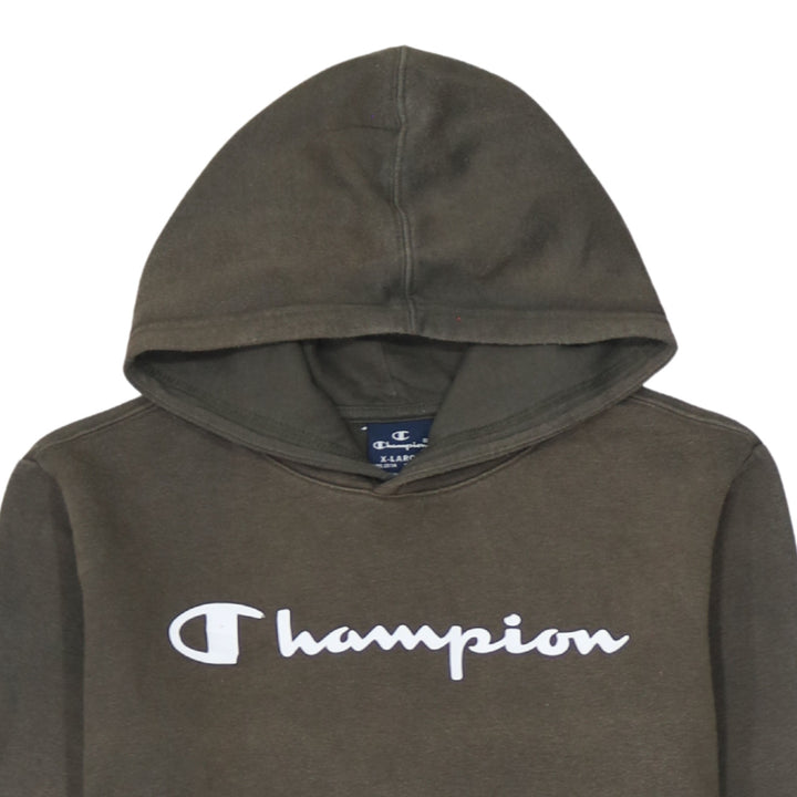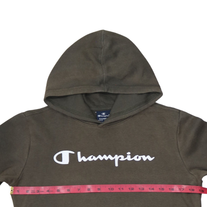 Champion Khaki Green Hoodie Women’s XLarge Printed Script Logo Front Pocket Pullover Sweatshirt