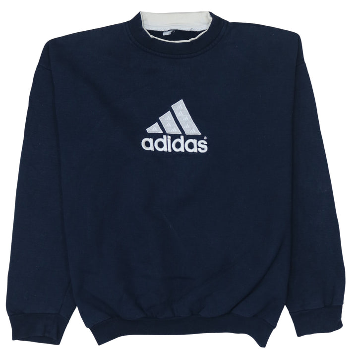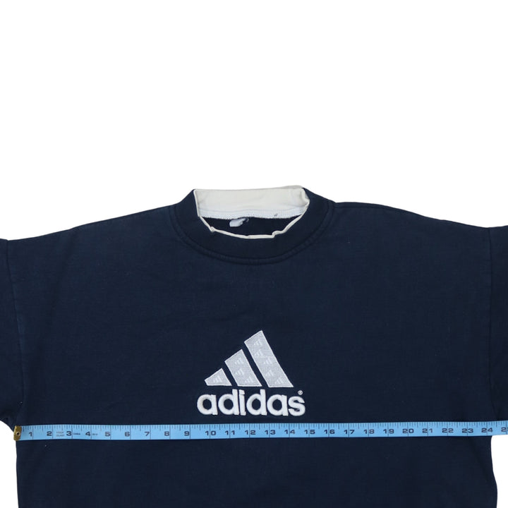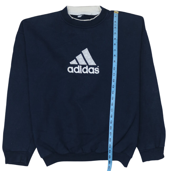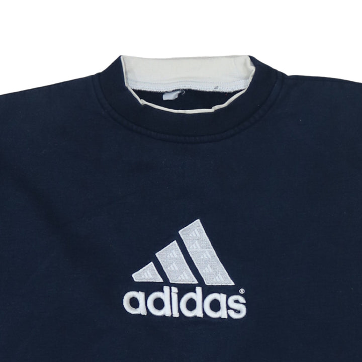 Adidas Navy Blue Sweatshirt Men's Large Embroidered Big Logo Crewneck Pullover Fleece Top