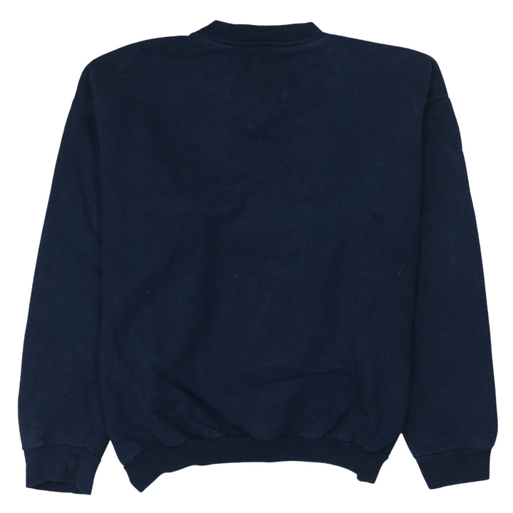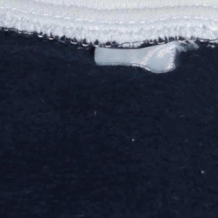 • Key Features: Navy blue fleece, large embroidered chest logo, ribbed cuffs and hem, classic crew neck