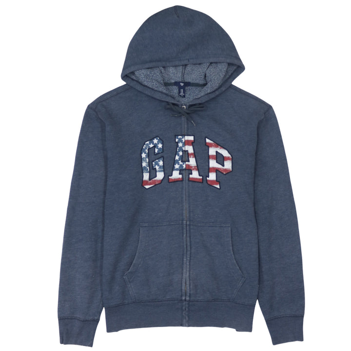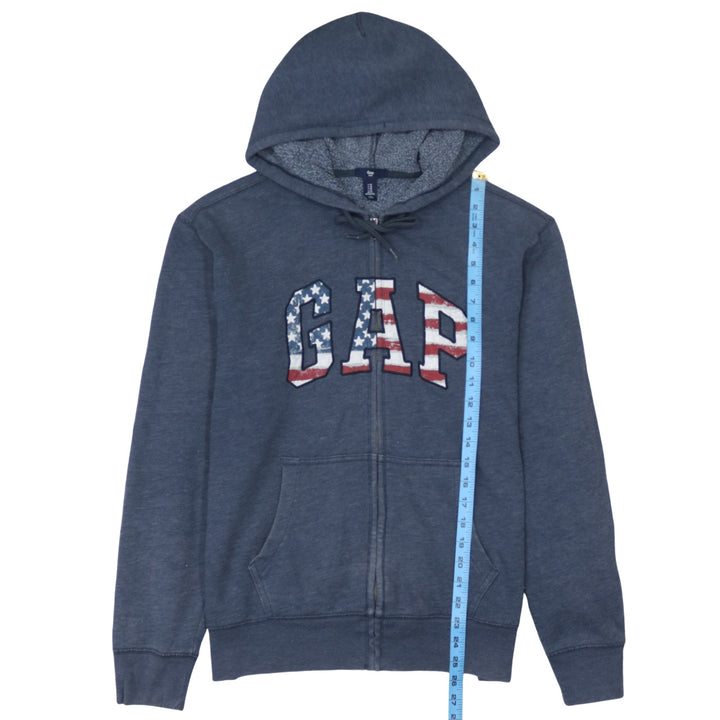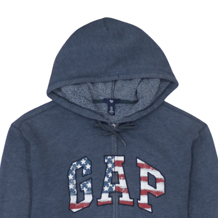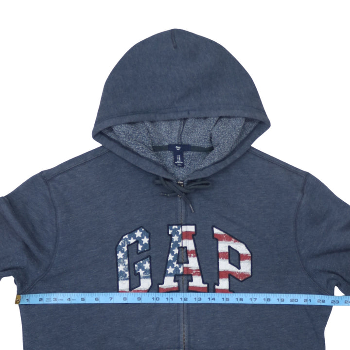 Gap Navy Blue Zip Hoodie Men's Medium Embroidered Flag Logo Split Pocket Sweatshirt