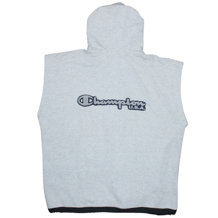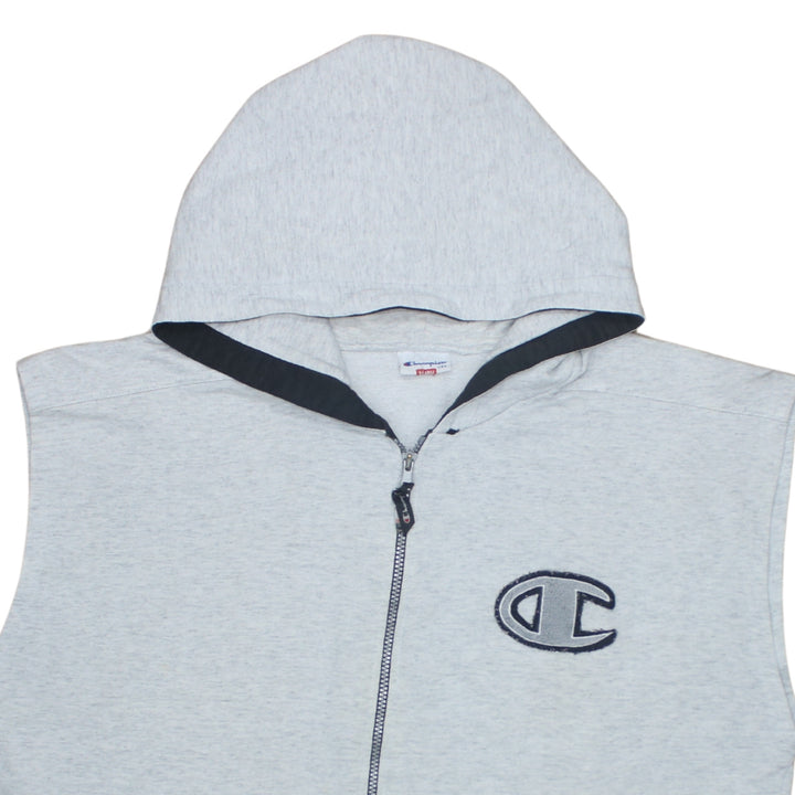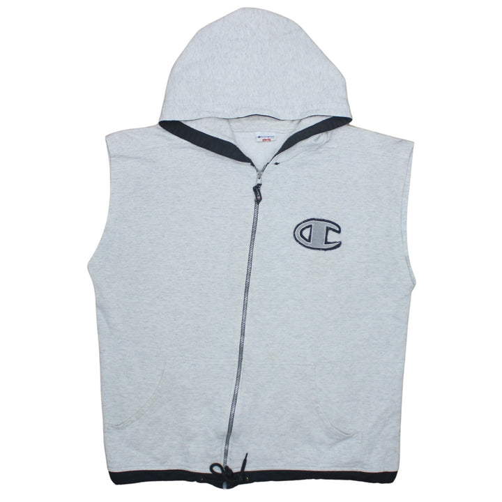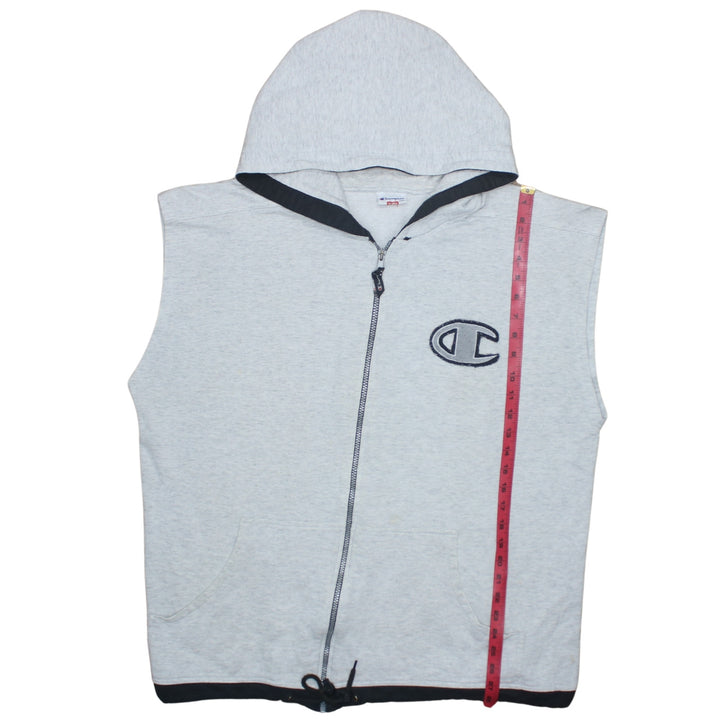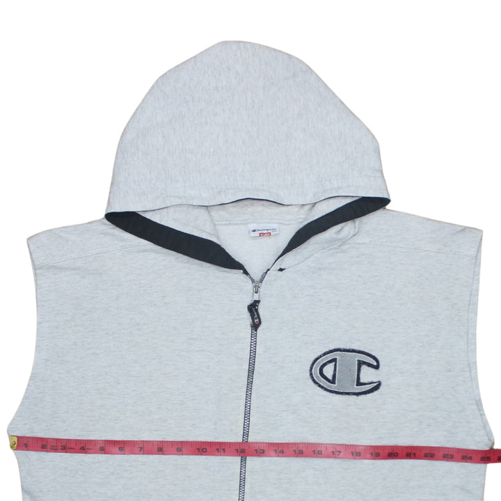 Champion Grey Sleeveless Hoodie Men’s XLarge Full Zip Embroidered Logo Pockets Gilet Vest