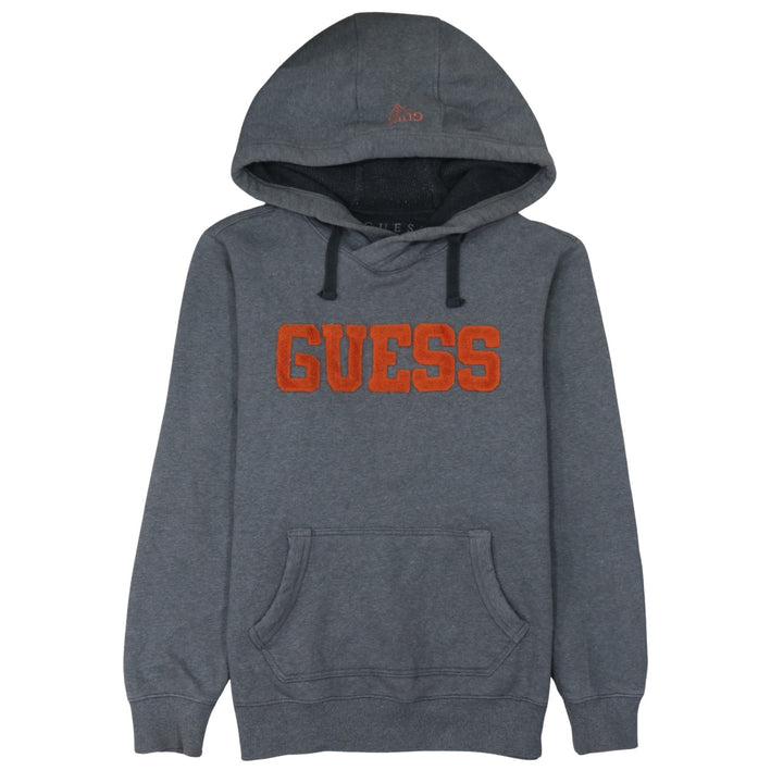 Key Features: Charcoal grey fleece, bold chenille Guess logo, drawstring hood, front pouch pocket