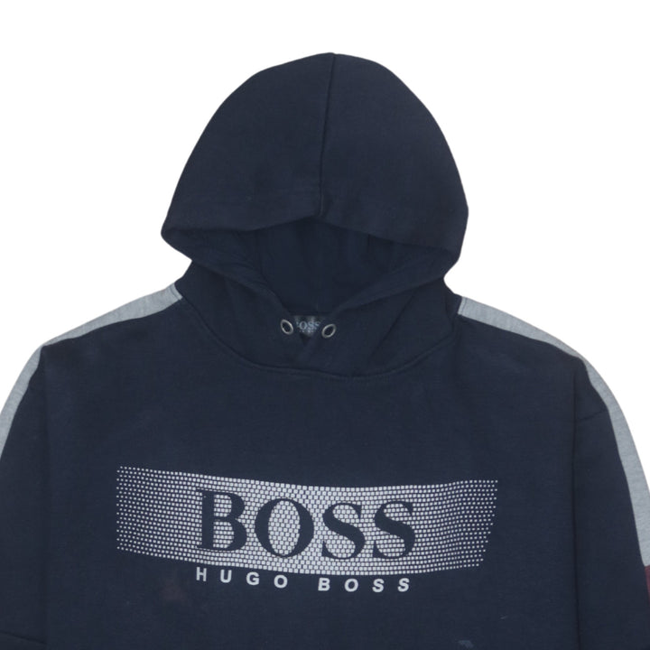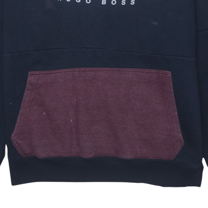 HUGO BOSS Navy Colour Block Hoodie Men's Large Printed Logo Front Pocket Sweatshirt