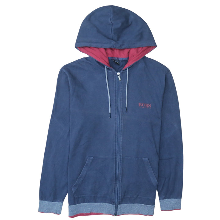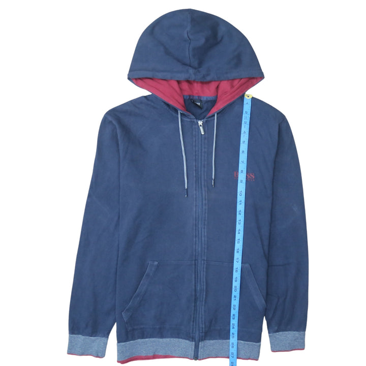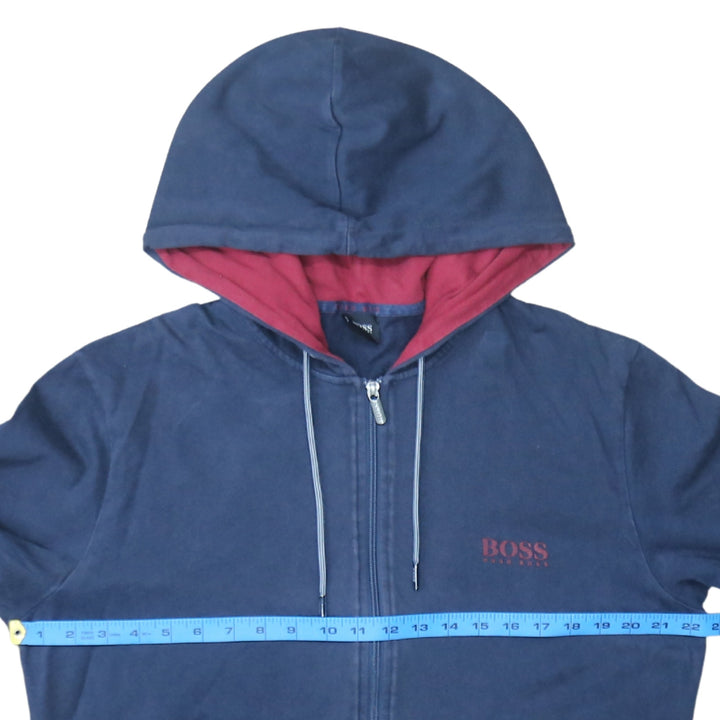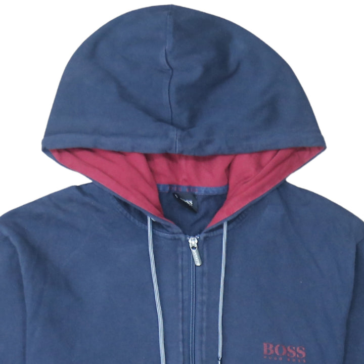 Hugo Boss Navy Blue Zip Hoodie Men’s XLarge Embroidered Chest Logo Drawstring Hood Sweatshirt