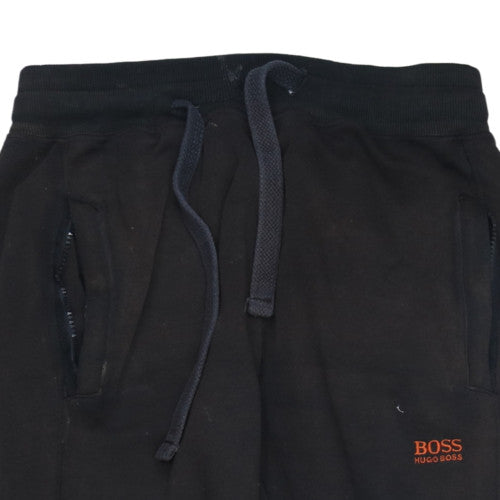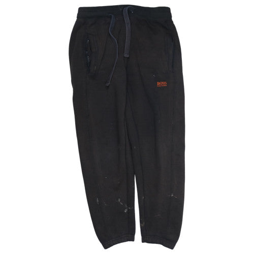 HUGO BOSS, Boss, Hugo Boss joggers, Hugo Boss sweatpants, black joggers, black sweatpants, men’s joggers, men’s sweatpants, medium joggers, size M joggers, embroidered logo joggers, cuffed joggers, elastic waist joggers, drawstring waist joggers, lounge bottoms, loungewear joggers, casual joggers, casual trousers, fleece joggers, fleece sweatpants, black Hugo Boss trousers, men’s casualwear, men’s loungewear, everyday joggers, relaxed fit joggers, oversized joggers, comfy joggers, paint mark joggers, distressed joggers, worn joggers, second hand joggers, preowned Hugo Boss, branded joggers, designer joggers, street joggers, gym joggers, training joggers, soft cotton joggers, black casual bottoms, tapered leg joggers, ribbed cuff joggers, side pocket joggers, rear pocket joggers, embroidered Boss logo, men’s medium trousers, men’s medium sweatpants