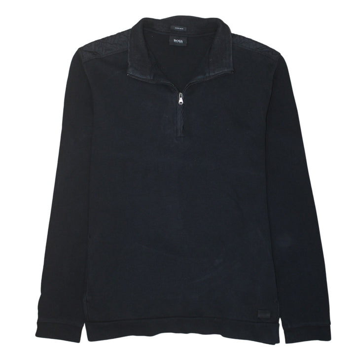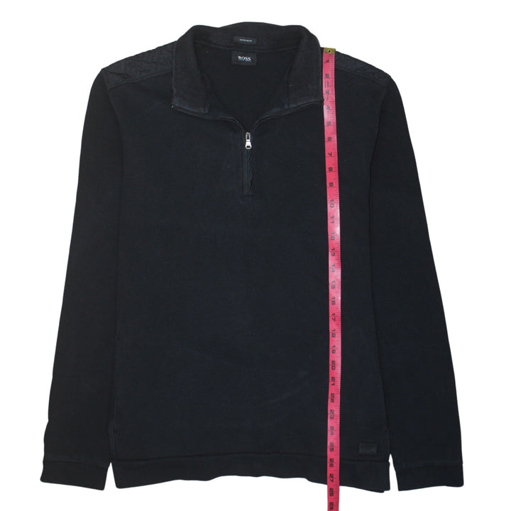 Hugo Boss, Hugo Boss sweatshirt, black sweatshirt, black half zip, half zip sweatshirt, quarter zip pullover, women’s sweatshirt, women’s XLarge, XL sweatshirt, casual pullover, black pullover, quilted shoulder detail, stand collar top, long sleeve top, cotton blend sweatshirt, loungewear top, casual wear, minimalist sweatshirt, designer sweatshirt, Hugo Boss women, black Hugo Boss top, classic black jumper, everyday basic, layering piece, comfy sweatshirt, relaxed fit sweatshirt, oversized look, ribbed cuffs, ribbed hem, subtle logo, designer casual, smart casual top, athleisure style, warm layer, soft fabric, pre-owned designer, A grade condition, wardrobe staple, pullover jumper, crew style sweatshirt, Hugo Boss XL, black long sleeve, women’s casual jumper, fashion resale, second hand designer, eco friendly fashion, slow fashion piece, timeless design