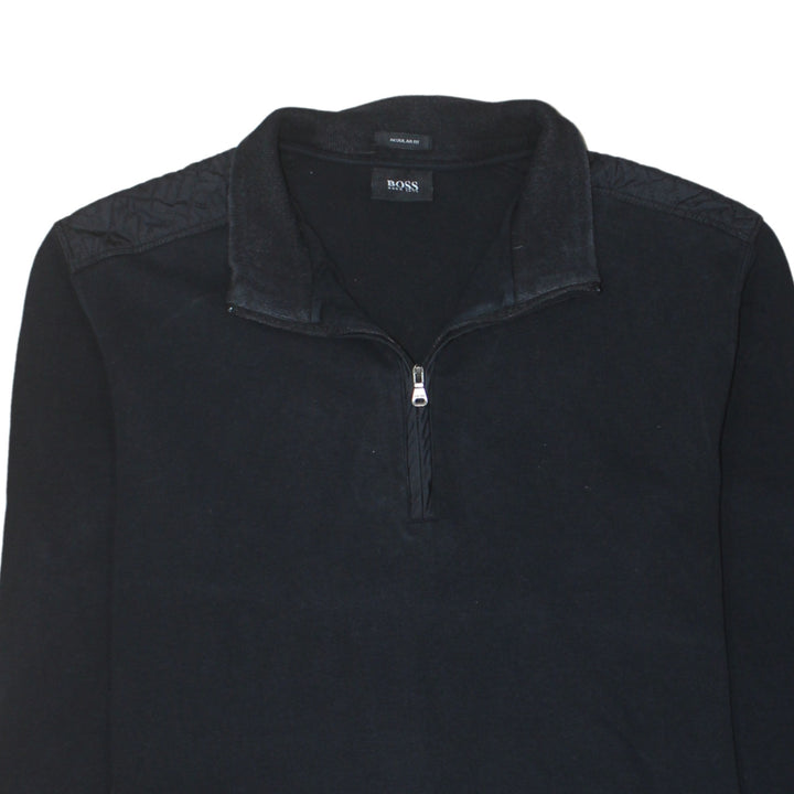 Hugo Boss Black Half Zip Sweatshirt Women’s XLarge Quilted Shoulder Detail Pullover Top