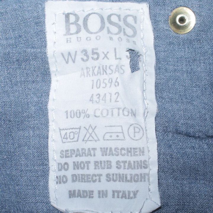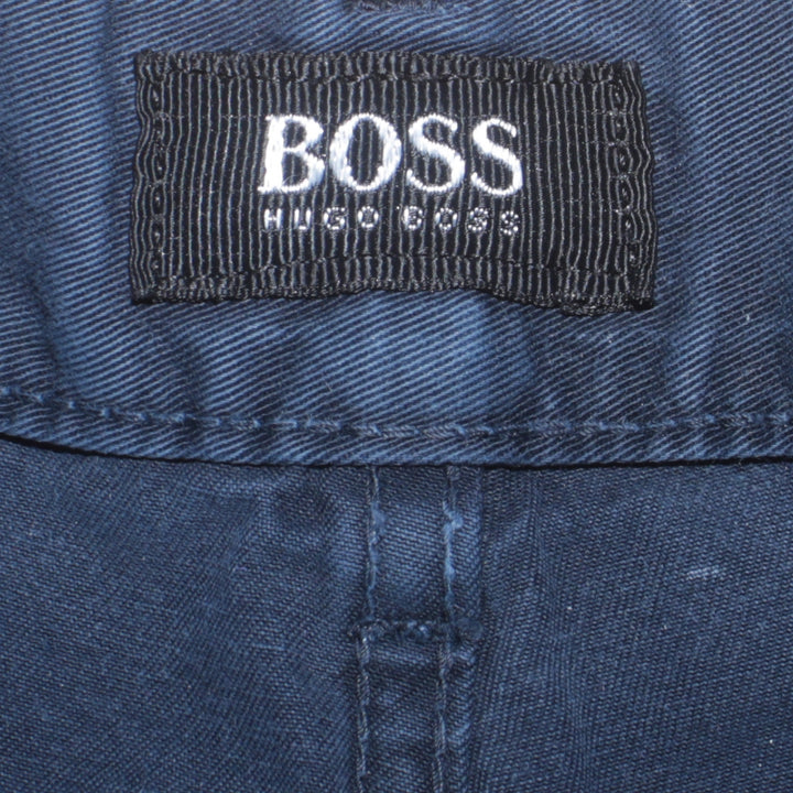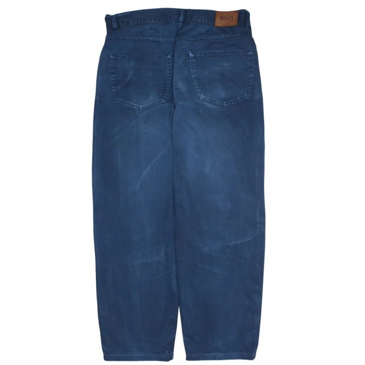 HUGO BOSS, Boss, navy trousers, navy blue trousers, men's trousers, men's pants, men's jeans, cotton trousers, cotton jeans, W35 L34, size 35 waist, relaxed fit trousers, relaxed leg pants, straight leg trousers, five pocket jeans, classic jeans, casual trousers, casual pants, smart casual bottoms, everyday wear trousers, blue cotton pants, designer trousers, designer jeans, Boss Arkansas, Hugo Boss Arkansas, men's denim look trousers, vintage Hugo Boss, classic menswear, wardrobe staple, Italian design trousers, navy blue jeans pants, belt loop trousers, button fly trousers, zip fly trousers, pre-owned Hugo Boss, A grade condition, second hand designer, men's casual wear, men's weekend style, jeans style trousers, navy cotton denim, durable cotton fabric, comfy fit bottoms, relaxed oversized fit, high quality trousers, timeless style pants, Hugo Boss logo patch, men's blue bottoms
