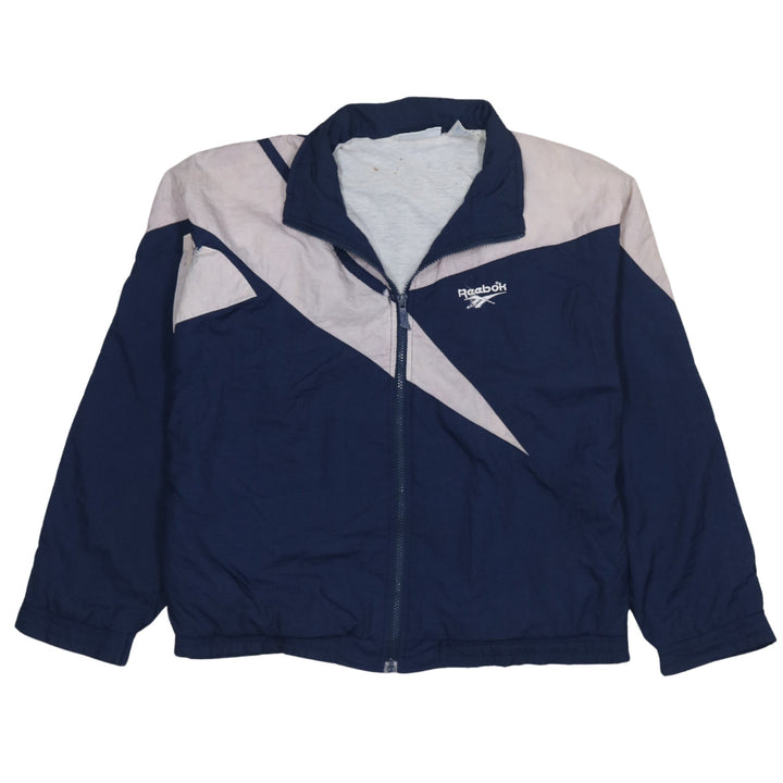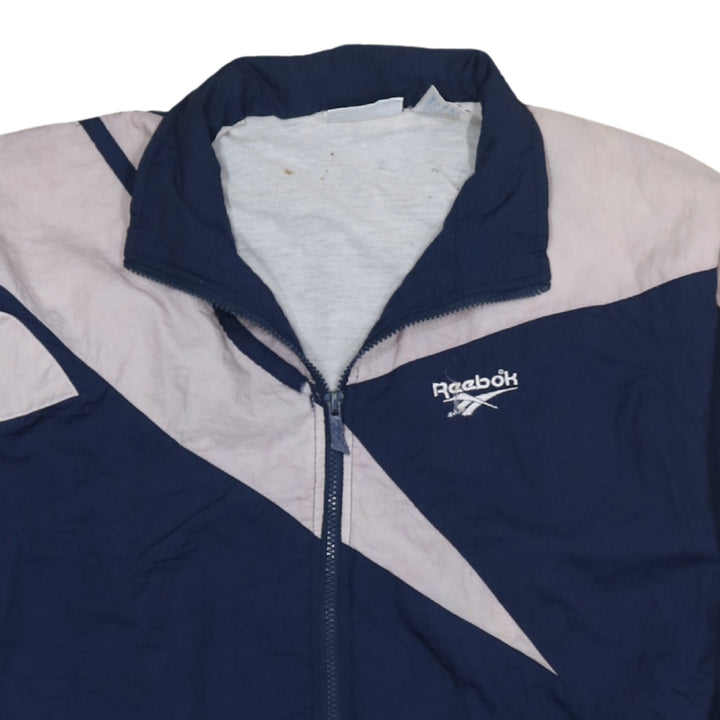 Reebok Navy Blue Windbreaker Jacket Women's XLarge Zip Front Embroidered Logo Track Top