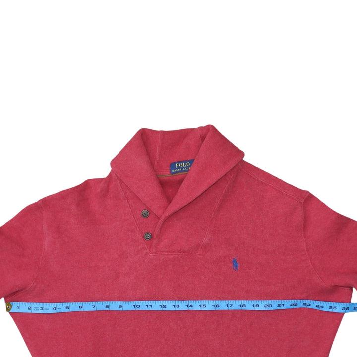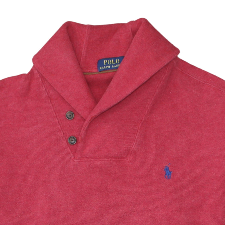 Polo Ralph Lauren Burgundy Red Jumper Men's Large Shawl Collar Embroidered Logo Knit Sweater