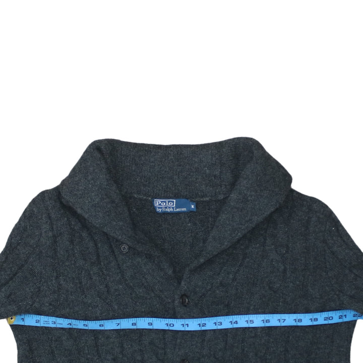Polo Ralph Lauren Charcoal Cardigan Men’s Medium Cable Knit Shawl Collar Button Jumper