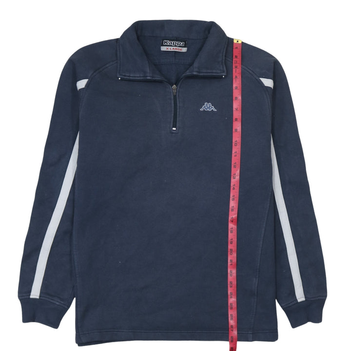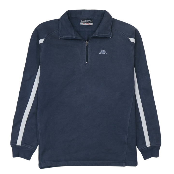 Kappa, Kappa sweatshirt, Kappa quarter zip, Kappa pullover, Kappa fleece, navy Kappa, navy blue sweatshirt, women's Kappa, womens XLarge sweatshirt, XL sweatshirt, quarter zip fleece, funnel neck sweatshirt, embroidered logo sweatshirt, stripe sleeve top, contrast stripe sweatshirt, casual pullover, sportswear top, athleisure sweatshirt, cosy fleece top, long sleeve top, navy blue fleece, polyester sweatshirt, classic Kappa logo, women's sports top, relaxed fit sweatshirt, oversized fit jumper, vintage Kappa top, track style sweatshirt, everyday casual wear, loungewear top, layering piece, embroidered chest logo, navy stripe jumper, women's casual layer, street casual top, navy long sleeve, sporty pullover, logo sweatshirt, blue Kappa jumper, training top, activewear layer, women's fleece jumper, pullover sweatshirt, crew style sweatshirt, half zip top, retro sports brand, classic sportswear, 11529-01