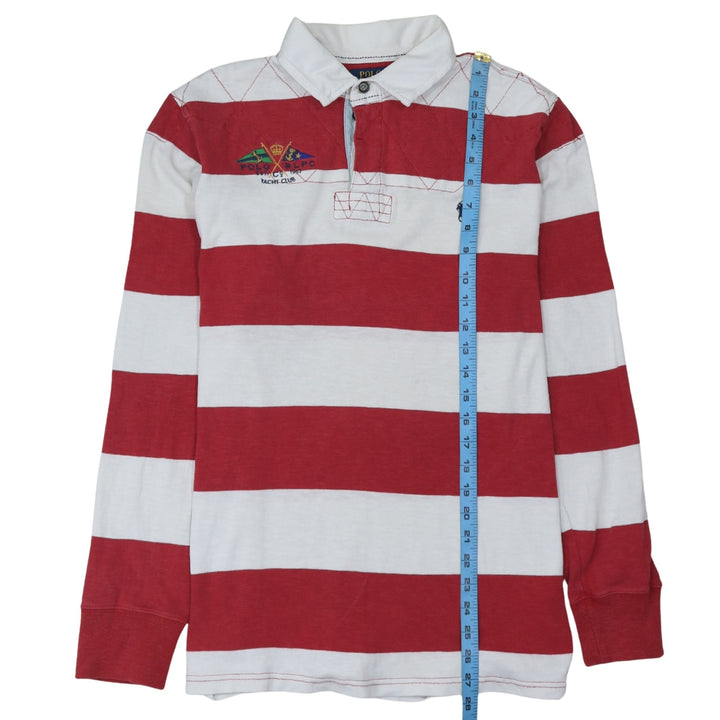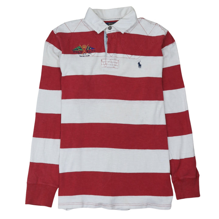 Polo Ralph Lauren Red White Rugby Polo Shirt Women’s Large Embroidered Crest Striped Long Sleeve Top