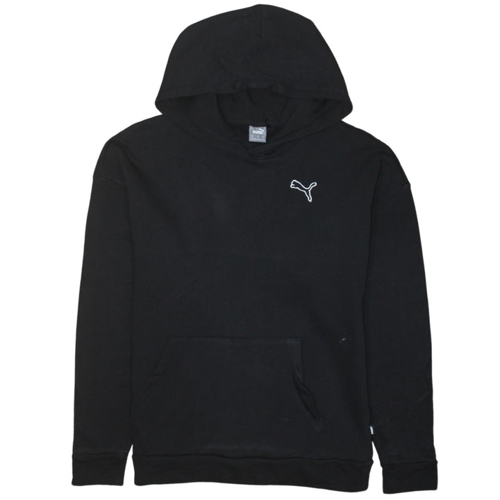 Puma Black Hoodie Men's Small Embroidered Cat Logo Front Pocket Pullover Sweatshirt