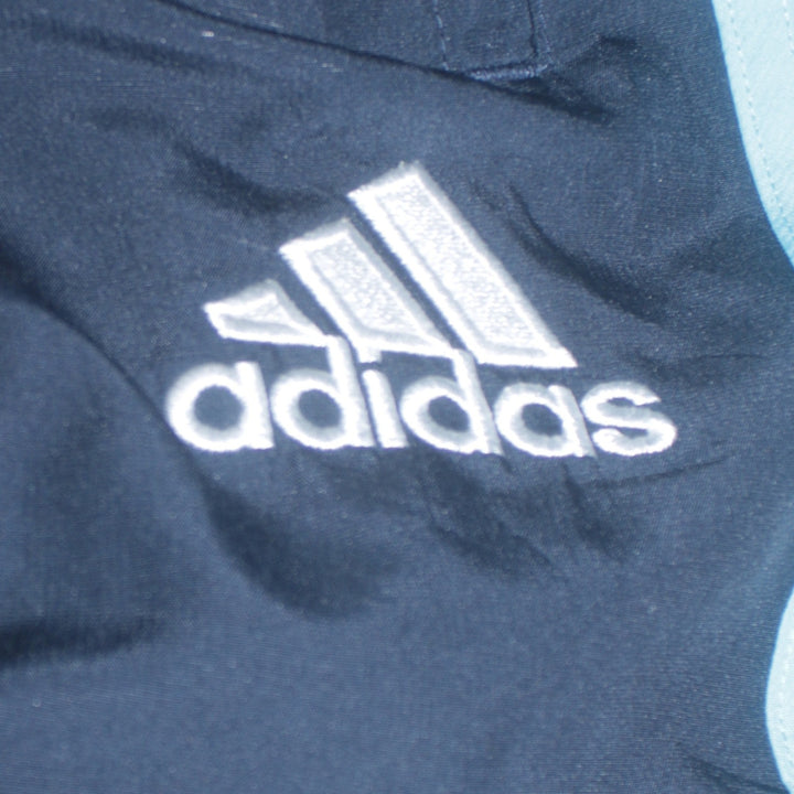 Classic Adidas Chelsea FC track joggers in a navy blue colourway with striking light bluethree-stripe detailing. Finished with embroidered club crest, sponsor and Adidas branding,these are perfect for collectors, match days or everyday sportswear. The relaxed fit andlightweight nylon fabric make them ideal for training, lounging or pairing with yourfavourite trainers for an easy casual look.